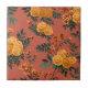 Bonito embaldosado de cerámica de inspiración vintage con tonos florecientes de flores de caléndula de oro y mariscos sobre un fondo rojo marrón. La decoración floral clásica evoca la elegancia y el romanticismo eternos, ideales para la primavera y los temas inspirados en el verano. Con sus delicados detalles y vibraciones de época, este diseño combina estética botánica clásica con belleza femenina, perfecta para celebraciones de temporada, colecciones de flores intemporales y amantes de las flores nostálgicas