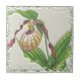 Esta cerámica decorativa tiene una preciosa flor de pantuflas de damas rojas darj, orientada a un lado, al estilo de ilustraciones botánicos de época. La flor de orquídeas resbaladizas aparece a menudo en pequeñas aberturas, prados de hierba, knolls de madera y praderas, y es una planta protegida en algunos estados. El azulejo tiene una textura falsa 3D - se imprime plano aunque parece tener dimensiones en la superficie.