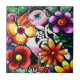 Azulejo Whimsical Abstract Puffin Bird In Flowers