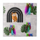 Azulejo Whimsical Boho Owl & Tropical Monstera Leaf