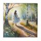 Azulejo Whimsical Girl Dancing Through Birch Forest
