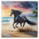 Black stallion horse galloping on the beach, beautiful watercolor painting.