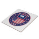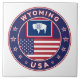 Insignia de Wyoming con bandera de Wyoming y bandera de los colores de EE.UU., forma redondeada. Emblema de Wyoming. Sello de Wyoming. Colección de Estados Unidos.