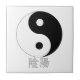 Yin yang con caligrafía china en baldosas de cerámica en blanco y negro