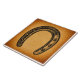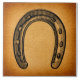 Presenta un estilo vintage de estilo antiguo de la herradura occidental con obras de arte antiguas ilustradas en un ambiente rústico de color marrón naranja. Perfecto para los amantes de los caballos, los animales de granja y el arte campestre de estilo occidental.