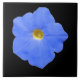 Esta impresionante baldosa muestra una fotografía de una flor petunia que ha sido manipulada para hacer que el centro de la flor brille de amarillo brillante. El resto de la flor es de un color azul igualmente brillante.