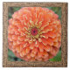 Ponga un poco de belleza en su vida con una baldosa de cerámica que contiene una foto de un naranja llamativo zinnia rodeado por un borde hecho de los patrones únicos que se encuentran en la corteza de los árboles. El mosaico se puede utilizar solo o combinado con un marco de madera y se puede utilizar como trívet o con una caja de madera y como caja de mantenimiento única.