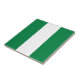 Este diseño consiste en la bandera nigeriana astutamente reformada para que se ajuste a la superficie cuadrada de las baldosas. Un artículo decorativo y útil que haría un regalo perfecto para los que quieran recordar Nigeria.