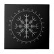Azulejo cerámico de Runas Aegishjalmr. Aegishjalmr Runes es un diseño germánico creado por Anna M. Asbury y consiste en un fondo negro con un Aegishjalmr en el centro, rodeado por las Runas del Futhark Antiguo.