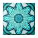 Baldosa cerámica con un diseño fractal original de Anne Vis en azul turquesa, verde y verde azulado en forma de estrella floral. ¡Perfecto para el cuarto de baño!