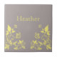 Azulejos florales de mariposa dulce y delicado con un fondo gris turbio y turbio, mariposas amarillas claras y adornos de viñas florales. Esta elegante baldosa florida completaría cualquier decoración. Fácil de personalizar, simplemente agregue el texto personalizado de su elección en los campos de texto proporcionados. Haga clic en el botón "Personalizar" para encontrar opciones de personalización adicionales.
