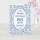 Una 85a tarjeta de cumpleaños muy bonita, con un estampado de flores de los azules añiles en la portada y un falso ajuste del cordón en el interior, donde usted puede también personalizar el mensaje. Este diseño es parte de la colección elegante y Painterly del "añil" y se puede ajustar fácilmente para caber cualquier tamaño de la tarjeta.