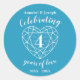 Blue topaz celebrando 4 años de pegatinas del aniversario del amor. Sencillo contorno de infarto de roca de topaz en azul y blanco, cuarto Boda pegatinas redondos de aniversario. Personalizar con sus propios detalles del fiesta de los cuatro bodas. El cuarto aniversario se asocia con la piedra de roca azul topaz y el corazón simboliza el amor. Gráficos y diseño de Sarah Trett para www.mylittleeden.com en zazzle.