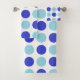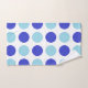 Alternancia de lunares azules azules y en colores pastel contra un fondo blanco.