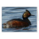 Tarjeta Eared Grebe. El ojo rojo brillante del dorado de las orejas se ve a cierta distancia. Se alimentan buceando hasta el fondo de lagos y estanques para cazar peces pequeños, insectos de agua, caracoles, etc.