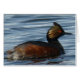 Tarjeta Eared Grebe. El ojo rojo de estos pájaros coloridos les da un aspecto casi amenazante. El hermoso ojo rojo irrisorio de estos pájaros los ayuda a ver a su presa mientras se sumergen en aguas profundas y oscuras para alimentarse.