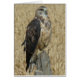 Tarjeta de Aguililla Ferruginosa. Posada en un viejo poste de cedro partido, la depredadora aguililla ferruginosa mantiene vigilancia para su próxima comida. Los agricultores aman a estas aves por mantener las poblaciones de roedores bajo control de manera natural.