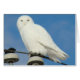 Tarjeta de Búho Nival. En mi opinión, el más hermoso de todos los rapaces, el búho nival. Enmarcado por un cielo invernal frío y azul, este magnífico ave depredadora con sus enormes garras busca presa desde un poste de energía.