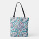 Hermoso patrón persa de Boteh Paisley en personalizable todo impreso en bolsa de tote con monograma en forma gris redondo. almohada coincidente, asiento de bolsillo, portátil espiral, leggings y más...