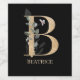 Letra B monograma floral. Letra B en textura marrón dorada acentuada con hojas y bayas compuestos de acuarela verde y polvo de oro. Personalizado con el nombre en el tipo de letra coincidente.