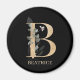 Letra B monograma floral. Letra B en textura marrón dorada acentuada con hojas y bayas compuestos de acuarela verde y polvo de oro. Personalizado con el nombre en el tipo de letra coincidente.