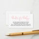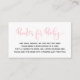 Una tarjeta de inserción de solicitud de libro para una ducha de bebé con poema: "UNA PEQUEÑA PEQUEÑA PETICIÓN, ESPERAMOS QUE NO SEA DIFÍCIL POR FAVOR TRAER UN LIBRO EN LUGAR DE UNA TARJETA QUE ELLOS CRIARÁN EL LIBRO, BIEN AMADOS O NUEVOS POR FAVOR, ¡RÓTULO EL INTERIOR CON UN MENSAJE!"