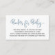 Una tarjeta de inserción de solicitud de libro para una ducha de bebé con poema: "UNA PEQUEÑA PEQUEÑA PETICIÓN, ESPERAMOS QUE NO SEA DIFÍCIL POR FAVOR TRAER UN LIBRO EN LUGAR DE UNA TARJETA QUE ELLOS CRIARÁN EL LIBRO, BIEN AMADOS O NUEVOS POR FAVOR, ¡RÓTULO EL INTERIOR CON UN MENSAJE!"