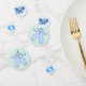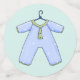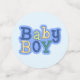 Dulces duchas de bebé o género revelan confeti con gráficos de huellas azules de pies de bebé, pijamas de bebé y texto gráfico que lee Baby Boy. Personalizar para agregar cualquier texto adicional.