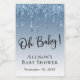 Una etiqueta de vino elegante y lujosa para tu ducha de bebé con un falso purpurina azul goteando desde la parte superior y "¡Oh bebé!" en un guión elegante contra un fondo azul oscuro. Personaliza fácilmente el nombre de la futura madre.