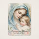 Recuerden a su precioso bebé en oración con esta hermosa tarjeta católica personalizada conmemorativa de la Santísima Virgen María sosteniendo a un bebé en sus brazos con acentos florales rosas.