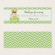 Este diseño de favores de la fiesta de la ducha para bebés cuenta con una tierna jirafa con baño. Las franjas de chevron verdes y blancas coincidentes rodean el texto personalizado que se puede editar con el texto deseado. Una alternativa a una etiqueta de regalo normal, esta etiqueta de agradecimiento de DIY está diseñada en el stock de tarjetas mini para comodidad y economía. Vienen en paquetes de 100. Simplemente puntee un agujero en el lado izquierdo de la tarjeta y ábralo a los favores de tu partido con una cinta, dos o cualquier otra cuerda deseada. La adorable gráfica de la jirafa de bebé cortesía de Kristi W. Designs.