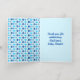Esta increíble tarjeta de Relieve metalizado de Baby Shower Gracias presenta una imagen de arte digital de un grupo de flores y mariposas, cada una de ellas con un tono azul para representar a un bebé. Las flores incluyen Dahlias, lirios de agua, no me olviden ni crisantemos. Las flores y las mariposas están dispuestas en círculo y hay un texto personalizado en el círculo para que puedas personalizarlo como quieras, haciendo este diseño perfecto para revelar el género del bebé, para una ducha de bebé o para celebrar a un bebé recién nacido. Hay un texto personalizado en el frente y en el interior que permite personalizar completamente el diseño. El texto y el diseño del frente están en un hermoso Relieve metalizado plateado.