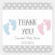 Gracias pegatinas con diseño de pies de bebé y fondo de polkadot gris.