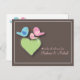 Una actividad divertida para incluirla en la ducha de bebé: coloque estas tarjetas en las mesas e invite a los huéspedes a dar a los nuevos consejos de mamá (y papi) que seguramente serán apreciados. También hace encantadores pastelitos para conservar. Presenta una linda familia de aves de mamá, papá y niña, todas sentadas en un corazón de verde y ambientadas en un suave fondo moreno mocha.