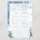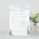Predicciones para bebés y juegos de consejo en invierno con pinos y copos de nieve.