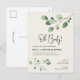 Ya sea que no puedas reunirte para un fiesta debido a las pautas de distanciamiento social del coronavirus, o que la familia y amigos de larga distancia están demasiado lejos, esta hermosa invitación de Baby Shower por correo permitirá a los seres queridos celebrar tu recién nacido desde cualquier lugar. El diseño presenta una tipografía minimalista moderna con tallos simples de hojas de eucalipto verde salado. El diseño neutral de género es perfecto para el bebé o la niña. Utilice las herramientas de diseño para añadir los detalles de su ducha o personalizar virtual para adaptarse a su evento.