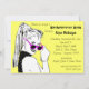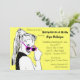 Un fondo amarillo con una imagen en blanco y negro de una mujer con una cola poni y coyuntamente mirando por encima de sus gafas de sol rosas calientes adorna el frente de esta invitación. Un montón de texto personalizable en la parte delantera para toda la información de su fiesta! Texto de Personalizable en la parte posterior para la información del registro y las direcciones de conducción o cualquier otra información que desee agregar.¡Compra más y ahorra!