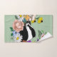 Un tierno insignia sentado entre flores.
