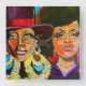 ¿Buscando un regalo único? Este divertido reloj con la Reina Negra, Jill Scott y la Reina Africana, Ereka Badu le añadirá algo de encanto a cualquier habitación. La tía Karen muestra al artista emergente Valencia Goodwin. El original "Badu vs Scott" se inspiró en el popular programa de televisión "VERSUS Battle". Una parte de las ganancias beneficia a la Fundación Tía Karen. Descripción original: Medio: Medio: Medio: Acrílico sobre lienzo Dimensiones: 48in. x 60in.