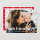 Muestra exactamente lo que piensas de la foto de la familia del año 2020 con nuestra graciosa postal de las vacaciones de Bah Humbug/Bah Humbugh. La tarjeta postal de Navidades divertidos muestra tu foto en la parte delantera con "Bah Humbugh" en un diseño de tipo de letra blanco y moderno con tu nombre y el año siguiente. La parte posterior de la tarjeta postal muestra tu dirección de retorno y mensaje personalizado con un fondo de copo de nieve rojo y blanco. Diseñado para coordinar con nuestra colección de tarjetas Bah Humbug Ugh Funny Navidades.