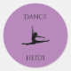 Bailar pegatinas redondos morados. Nombre personalizado.