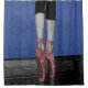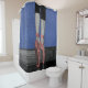 Piernas y pies de bailarina de ballet con zapatos de ballet rosado frente a una pared de notas musicales. Hay otros accesorios de baño a juego.
