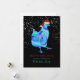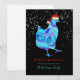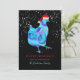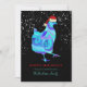 Delicia a tus amigos amantes de los pollos con esta adorable y colorida gallina usando un sombrero de Santa en un fondo negro con nieve que cae. Esta divertida tarjeta de Navidad con temática de aves festivas es fácil de personalizar usando la plantilla de tipografía. Arte original moderno y minimalista de la artista Catherine Sweetman