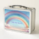 Esta bonito "Under the Rainbow" es la caja Metalizado de almuerzo. Es justo lo que ordenó la dr. El bonito diseño arcoiris con color de agua tranquila hará las delicias de tu pequeño. Todo el texto es editable: FRONT: Under the Rainbow is Where I Want to be. BACK: Su nombre o cualquier texto que prefiera.