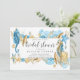 Personalice esta invitación a la ducha bajo el mar azul y dorada con caballitos de mar, peces estrella, conchas y arrecifes de coral. Para una personalización más avanzada de este diseño, haga clic en el botón "Personalizar" de arriba. También están disponibles los elementos coincidentes.