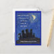 El mensaje de la tarjeta postal dice: "Cuando estamos separados, recuerdo que todos vivimos bajo la misma luna. Te abrazan a larga distancia". El arte muestra las sombras de tres humanos, un perro y un gato mirando a una luna creciente bajo un cielo estrellado. El arte se hacía con lavados de acrílico seguidos de pastel en papel. obra de arte Inspiradora de Laurel Latto para DonnaBellas Angels, organización sin fines de lucro. La misión de la organización es proporcionar arte inspirador para el bienestar de la salud mental. El lema es "La medicina cura el cuerpo, el arte cura el alma". Más información en línea en DonnaBellasAngels.org.