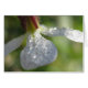 Bonita tarjeta en blanco con una foto macro de una pequeña flor blanca cubierta de pequeñas gotas de rocío.