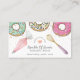 Una magnífica tarjeta de visita para un panadero, un chef pastelero, un postre con tintes rosados, verduras con estrellas doradas, donuts con salpicaduras, una bolsa de ping-pong y un whisky, cocidos con una frase de amor y un corazón rosa.