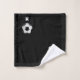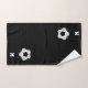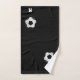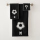 Balón de fútbol y monograma sobre el juego de toallas de baño negro. Elegante y sencillo diseño para los amantes del fútbol.