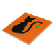 Una silueta de un gato negro en un fondo anaranjado. El gato se sienta con la cola aumentada. Una estrella verde se ata a la cola.